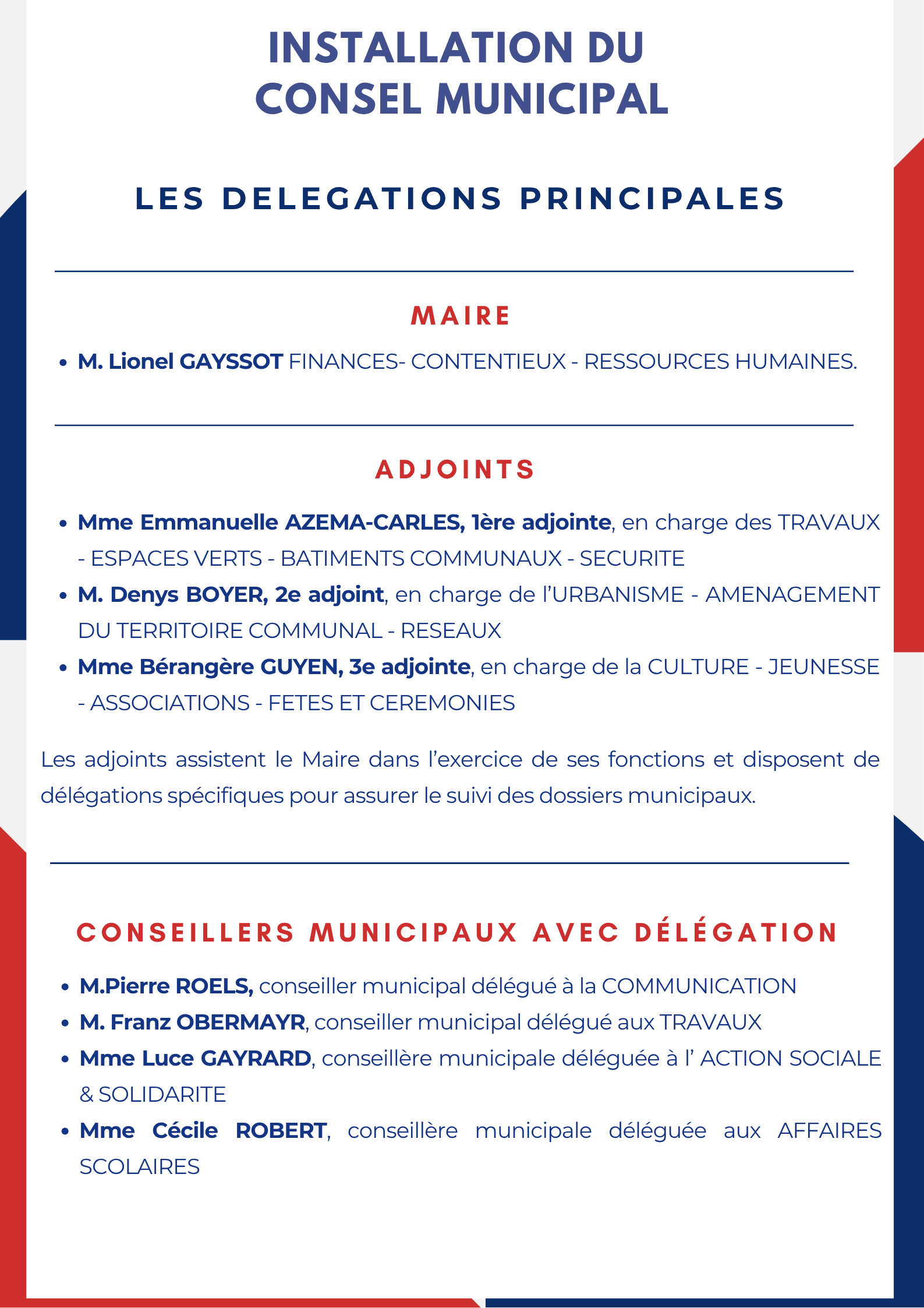 MISE EN PLACE DU NOUVEAU CONSEIL MUNICIPAL